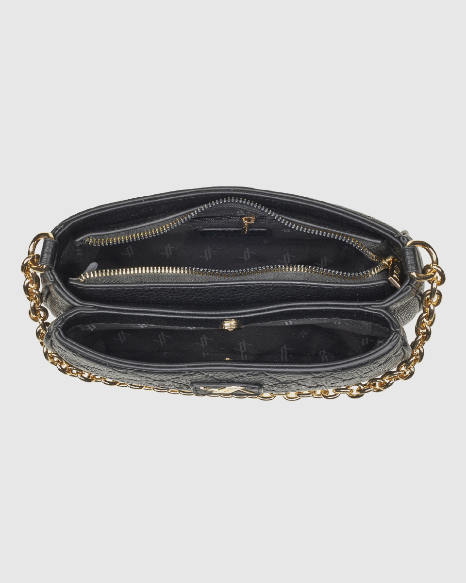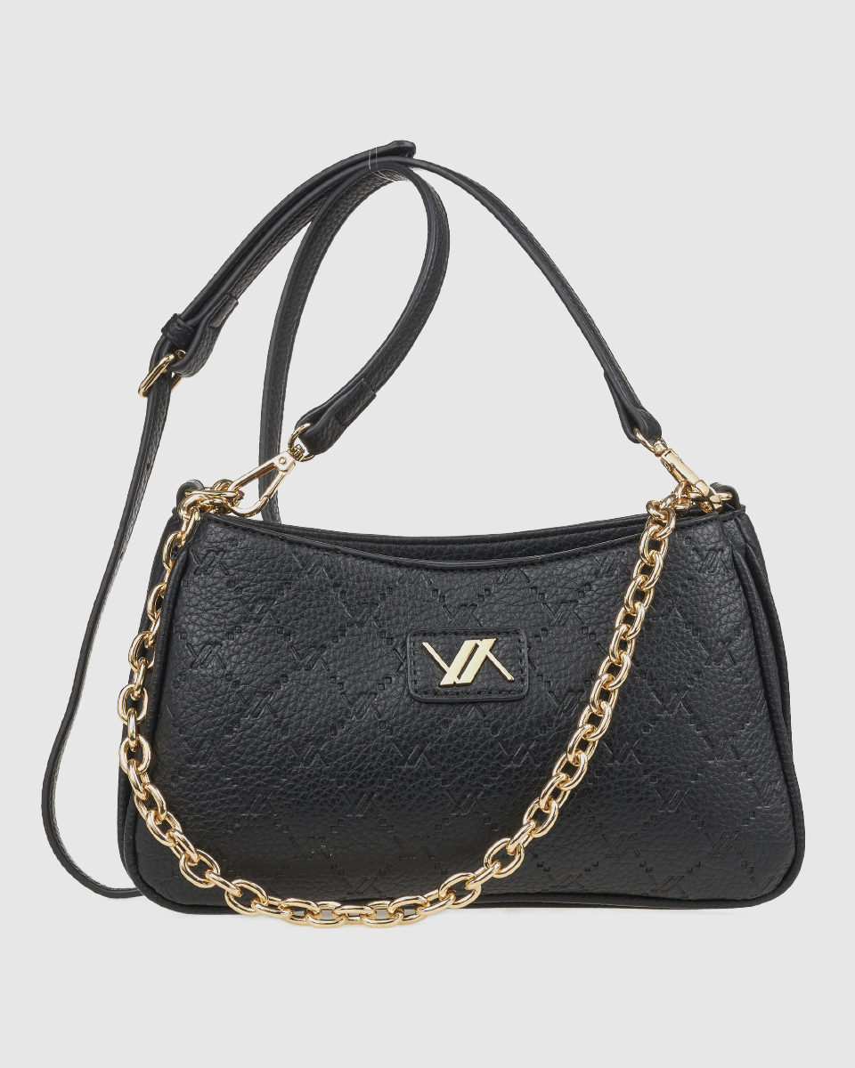 Διαθέτει ρυθμιζόμενο λουράκι ώμου και χρυσή αλυσίδα για απόλυτη κομψότητα.